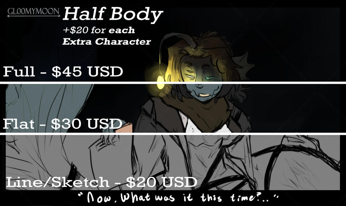 Look at the images above!Must be Paid Upfront or 50% at the start and after a confirmed sketch!What programs do you use?